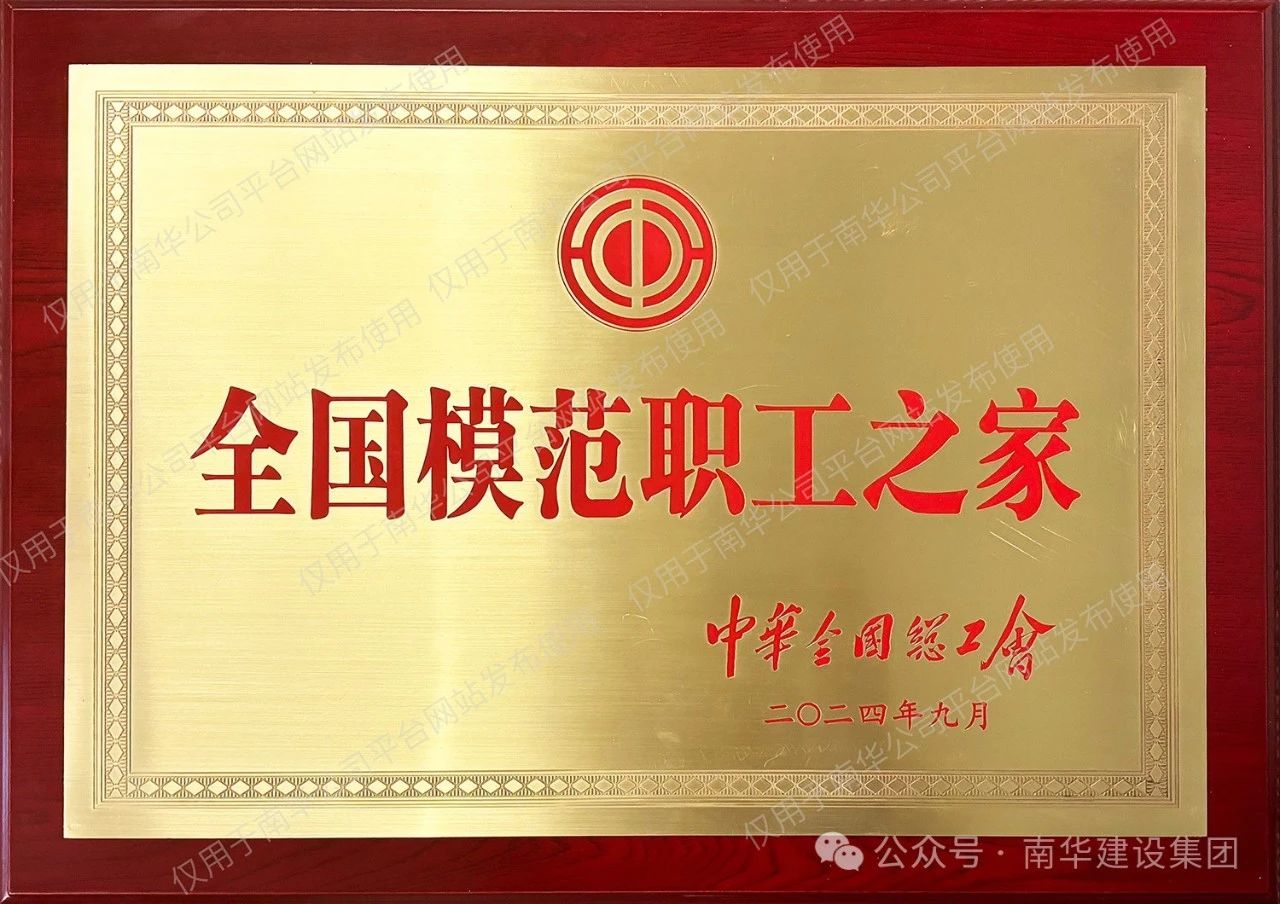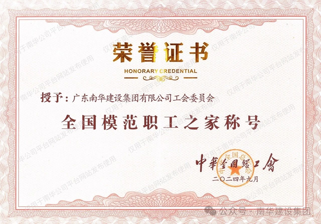 近期,中华全国总工会表彰了一批全国模范职工之家、模范职工小家和全国优秀工会工作者,广东南华建设集团有限公司工会委员会荣获“全国模范职工之家”称号。