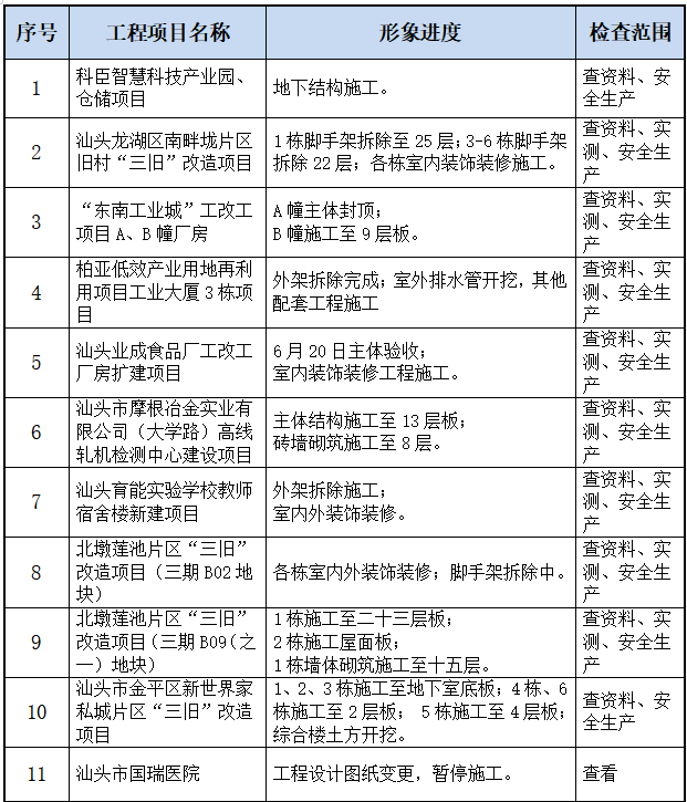 一、在建项目及其进度 以下11个项目工程接受本次检查。