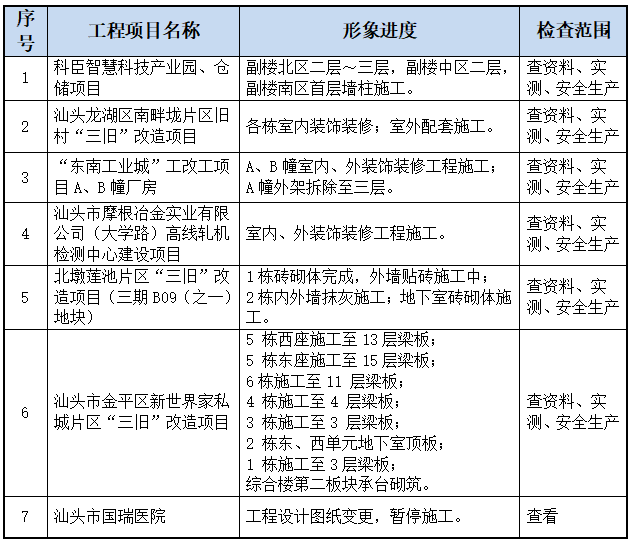 以下7个项目工程接受本次检查。